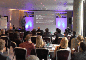 Mike presenting on cold prospecting tactics at the British Excellence in Sales & Marketing Awards (BESMA) annual conference in 2017